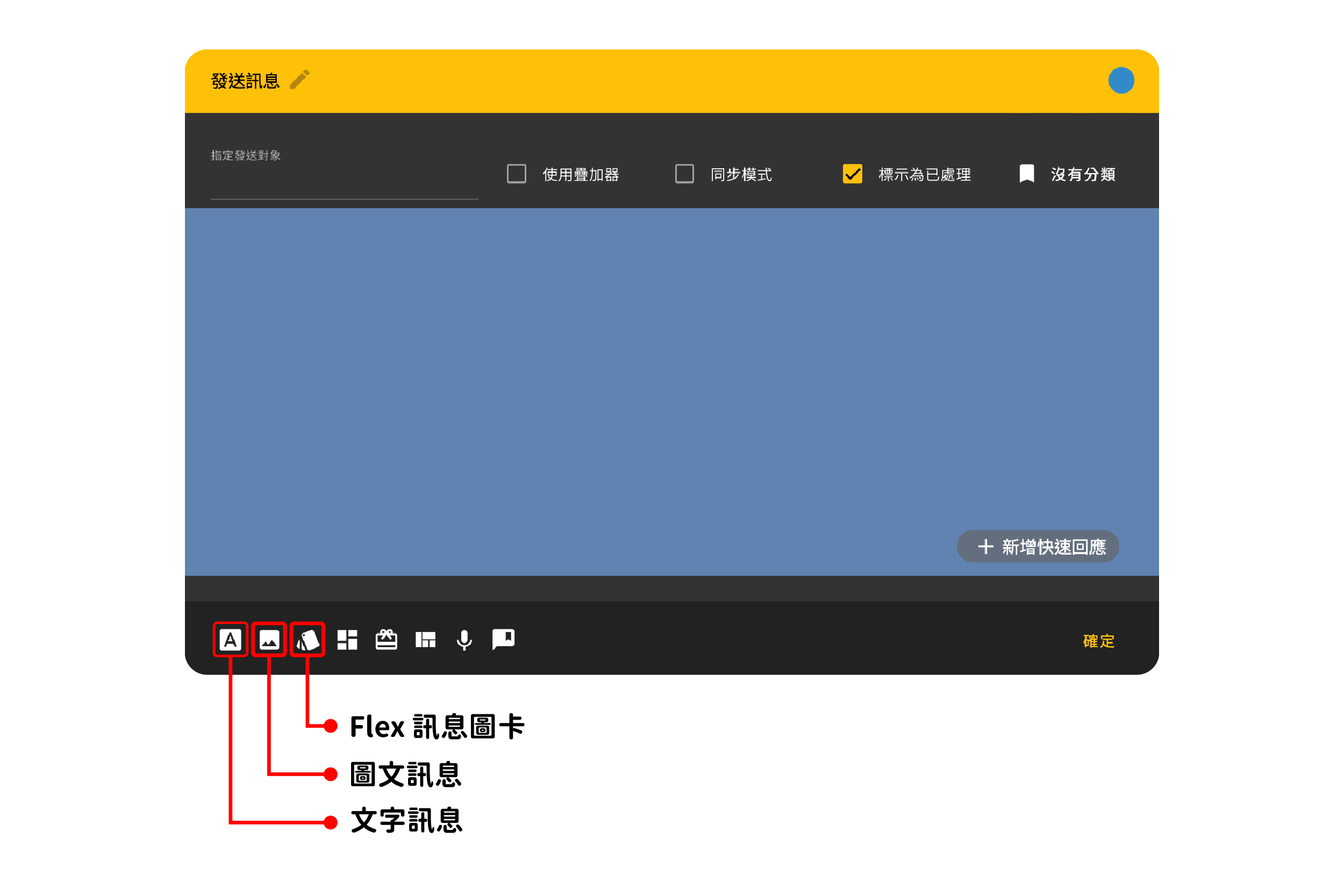 流程編輯器就像是自動回覆的「設計藍圖」,您可以在這裡規劃訊息的傳送順序、設定觸發條件、設計互動環節。