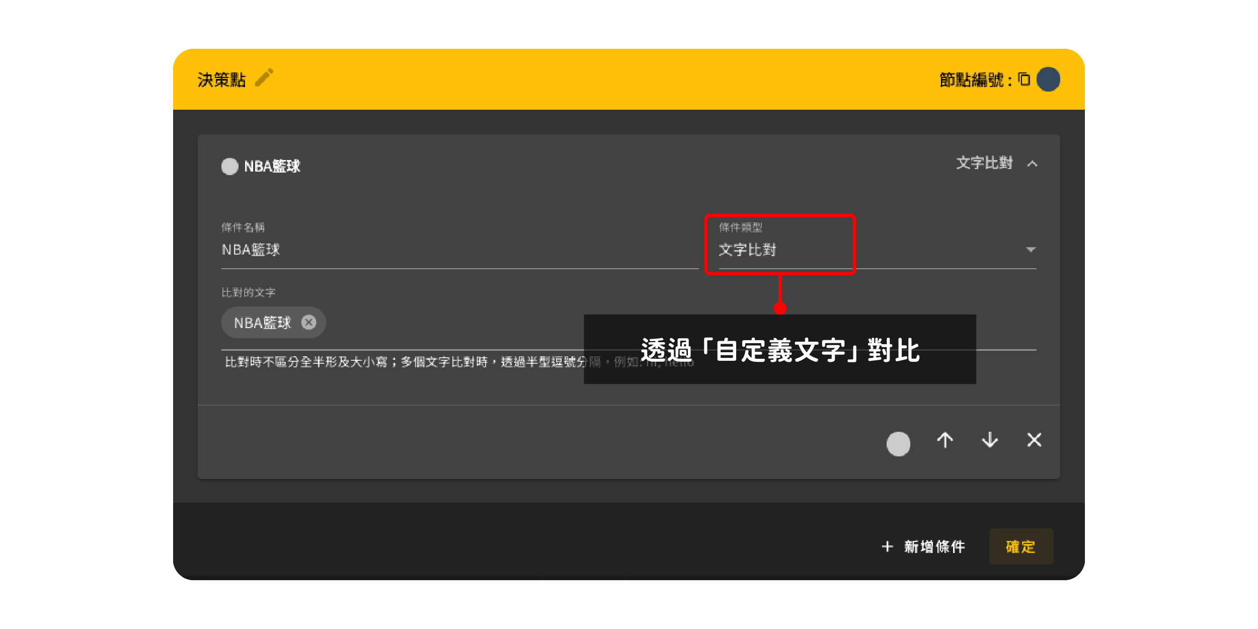 關鍵字觸發:點選「起始點」節點,選擇「關鍵字」作為觸發條件,並輸入想設定的關鍵字。例如,設定「產品資訊」作為關鍵字,當用戶輸入「產品資訊」時,就會觸發這個自動回覆流程。