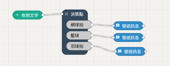 拖曳「訊息」節點至畫面上,並將其連接到「起始點」或「決策點」節點。在「訊息」節點中,可以編輯想自動回覆的內容。