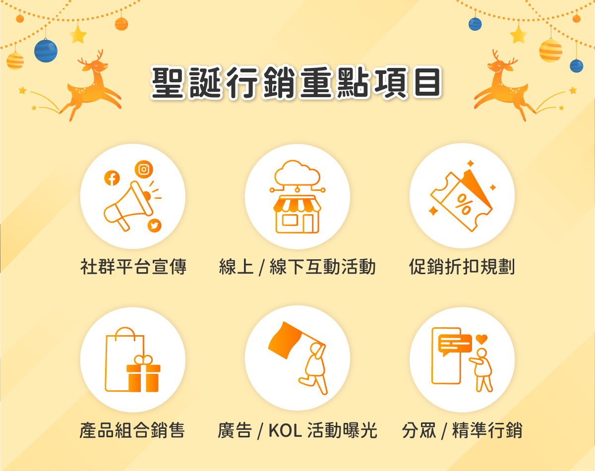 聖誕節又稱為「耶誕節」,在這充滿感恩的節日裡送禮、交換禮物十分盛行,因應不同身份,大家在聖誕節不只會買一樣禮物,已知商機無限的情況下,就該透過重點項目來製造話題,讓人與人之間轉分享來玩出新花樣吧!