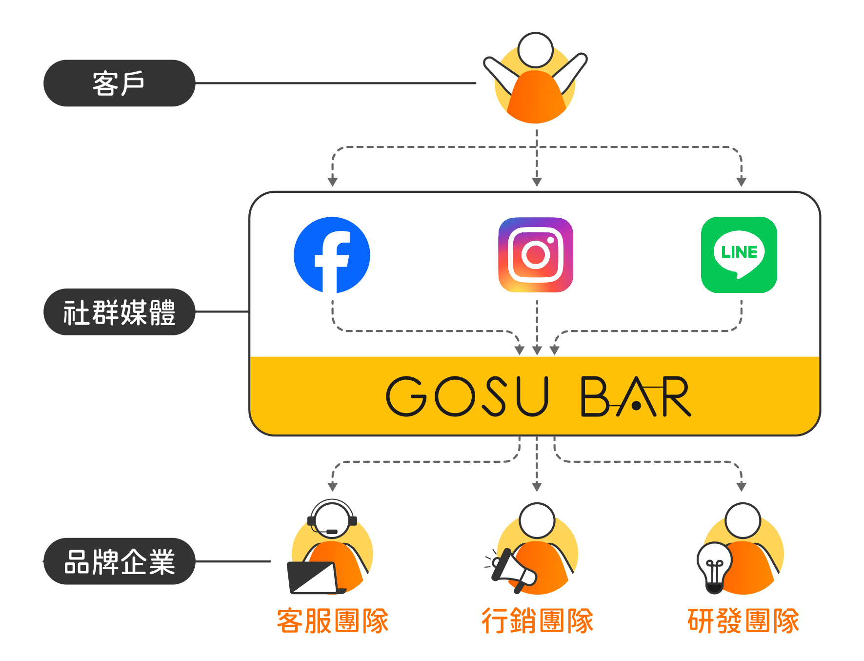 三大熱門社群媒體皆能在 GOSU BAR 自由切換。幫助使用者於社群經營上降低作業時間,減少內部人力及溝通成本,讓客戶經營事半功倍。