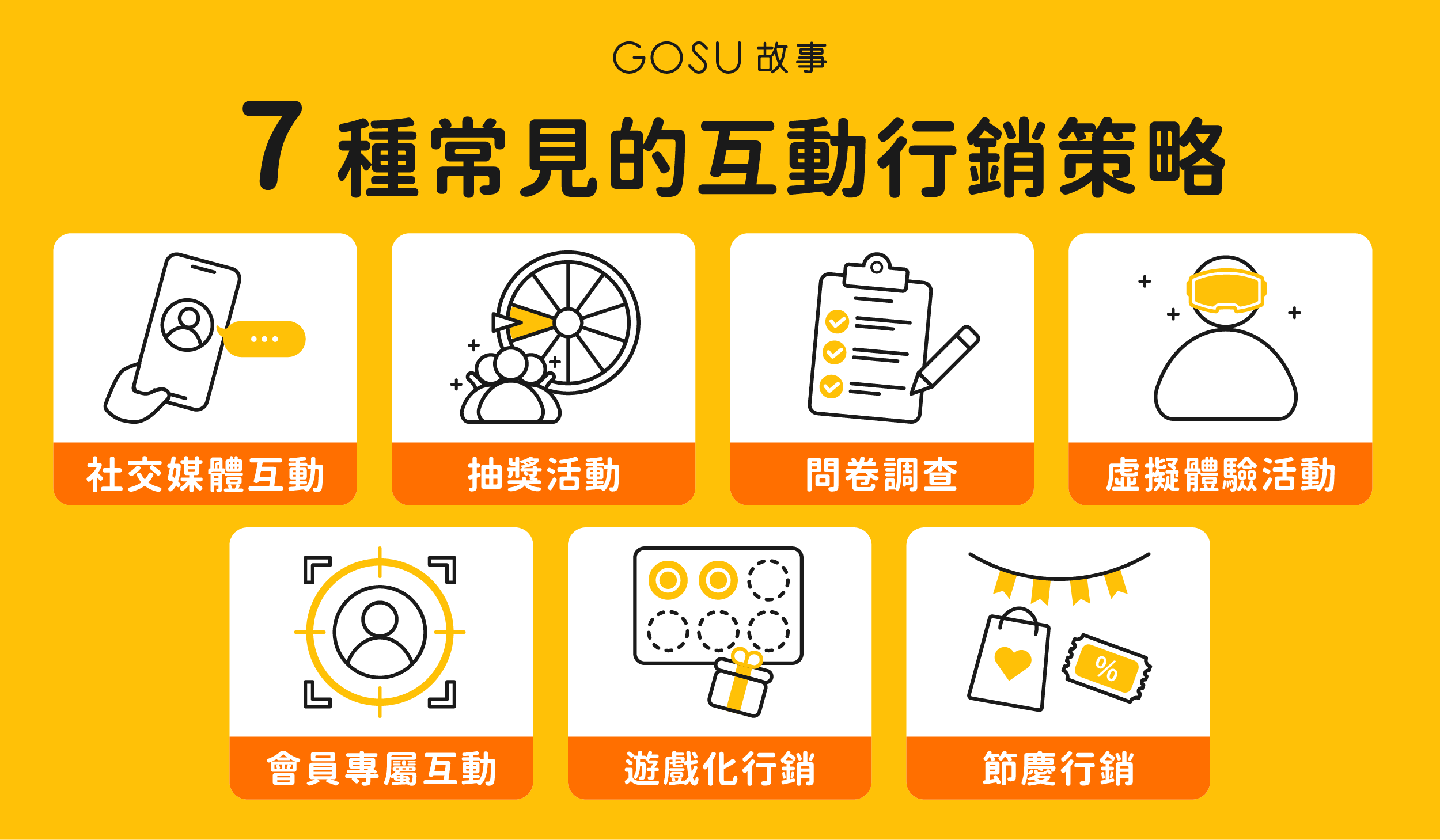 消費者對於參與感和個性化的需求越來越高,單向傳遞訊息的行銷方式儼然已無法滿足市場需求。因此,將創新的互動行銷方式,結合「遊戲化元素」或搭配「特定節慶、時事及議題」,能讓行銷活動更具吸引力,更進一步提升品牌影響力與顧客參與度。以下介紹7種常見制定的互動行銷策略,讓品牌活動事半功倍。