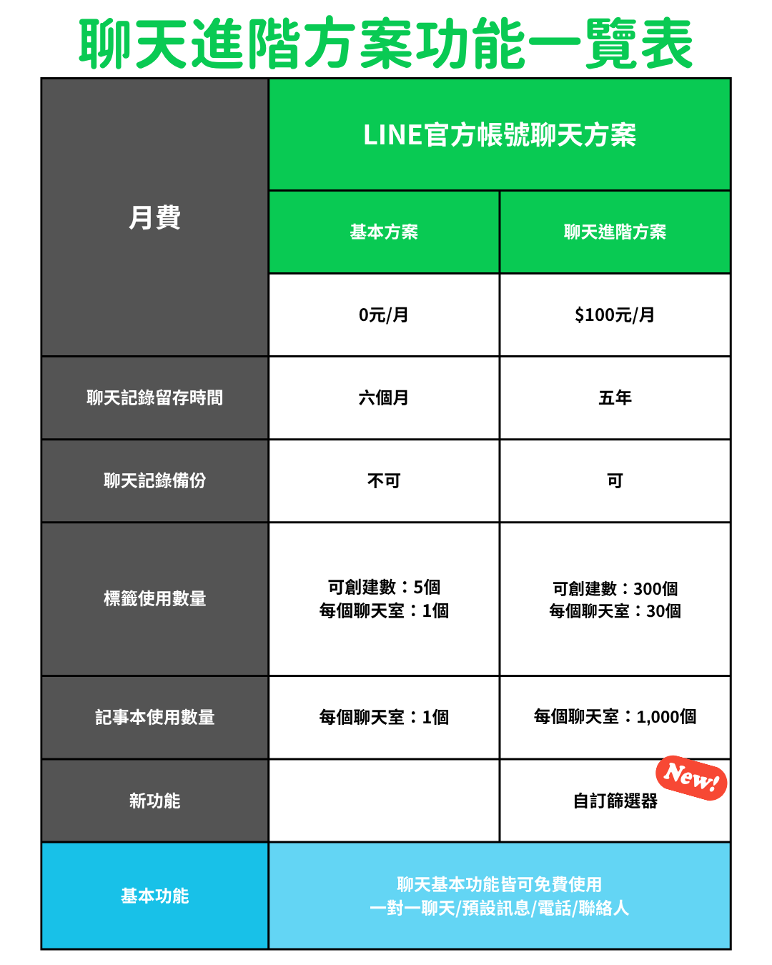 高用量 | $1,200 | 6,000 則 | 可加購 0.2元/則起降 | 先付月費 1,200,再加上「超過 6,000 的訊息數 × 當月對應階梯單價」。 | 大型電商、高頻率活動、需使用 API 串接 CRM 系統的企業。 |