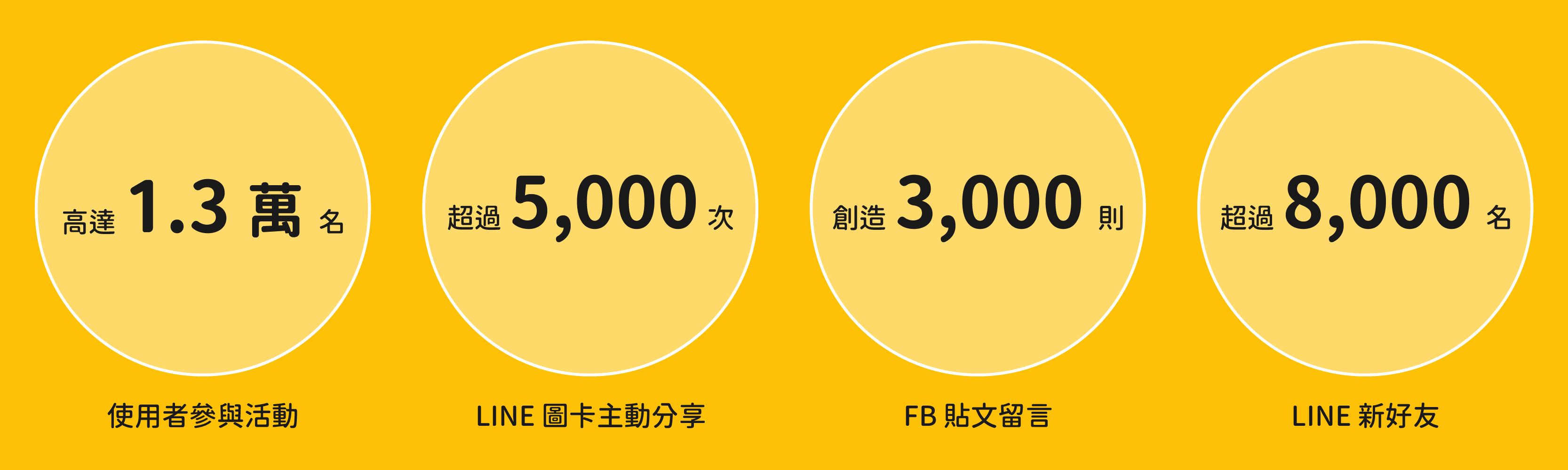 ● 互動成果:創造了超過 LINE 圖卡 5 千次主動分享數與 FB 貼文 3 千則留言數。
