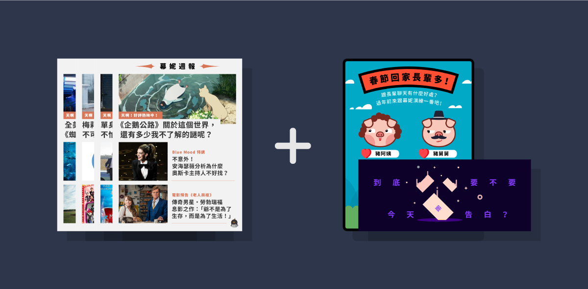 原本的幕妮就像個販賣機,好友們有點擊、幕妮才有回應,幕妮機器人並不會主動吐出飲料給你;但從去年開始,我們希望能傳遞一些電影裡美好的價值跟想法!