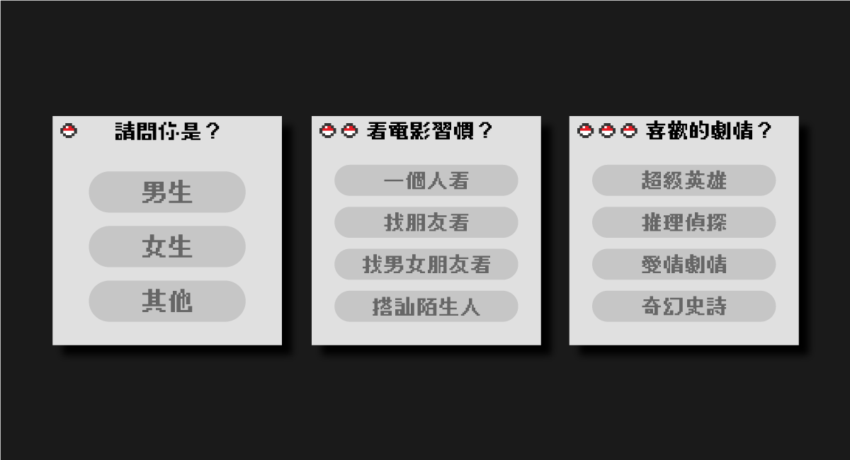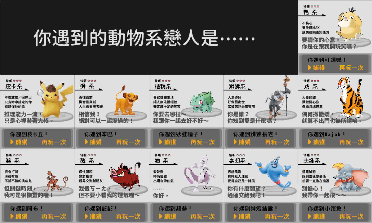 簡單來說,這次我們就是透過「心理測驗」的方式來統計大家的喜好啦。(雖然被包裝的很像懷舊遊戲)