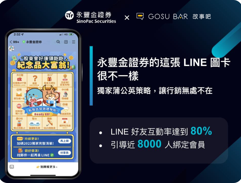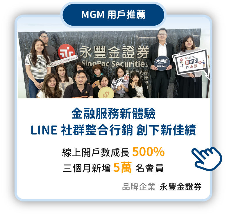 來看看金融業領域的 LINE 社群行銷,如何善用台灣用戶對 LINE 的高依賴度,打造「用戶體驗優先」的個人化跨平台服務。並透過數據分析,提供精準的服務推廣,提高整體行銷效果、並降低行銷成本!