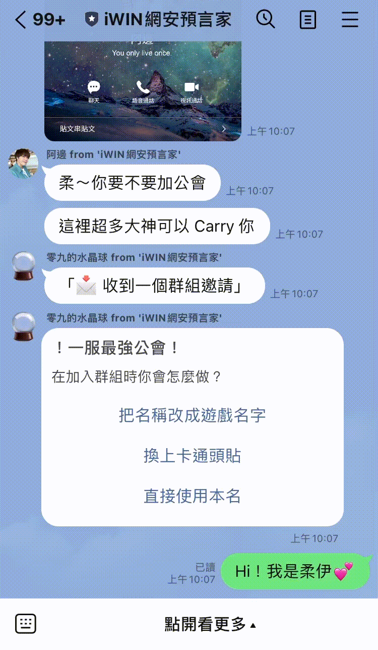 ⭕ 歡迎加入「 iWIN 網安預言家」 LINE ChatBot 體驗遊戲
