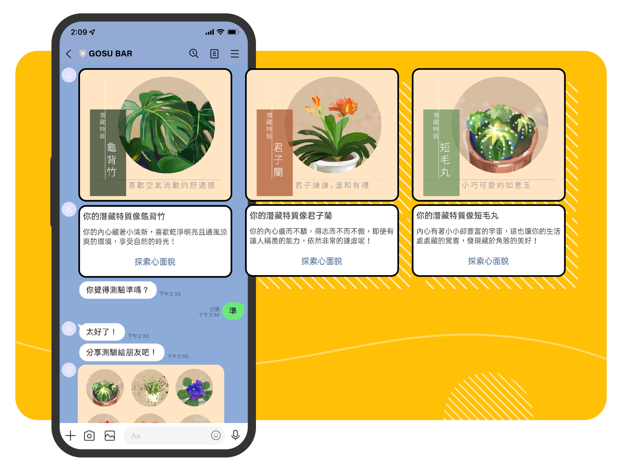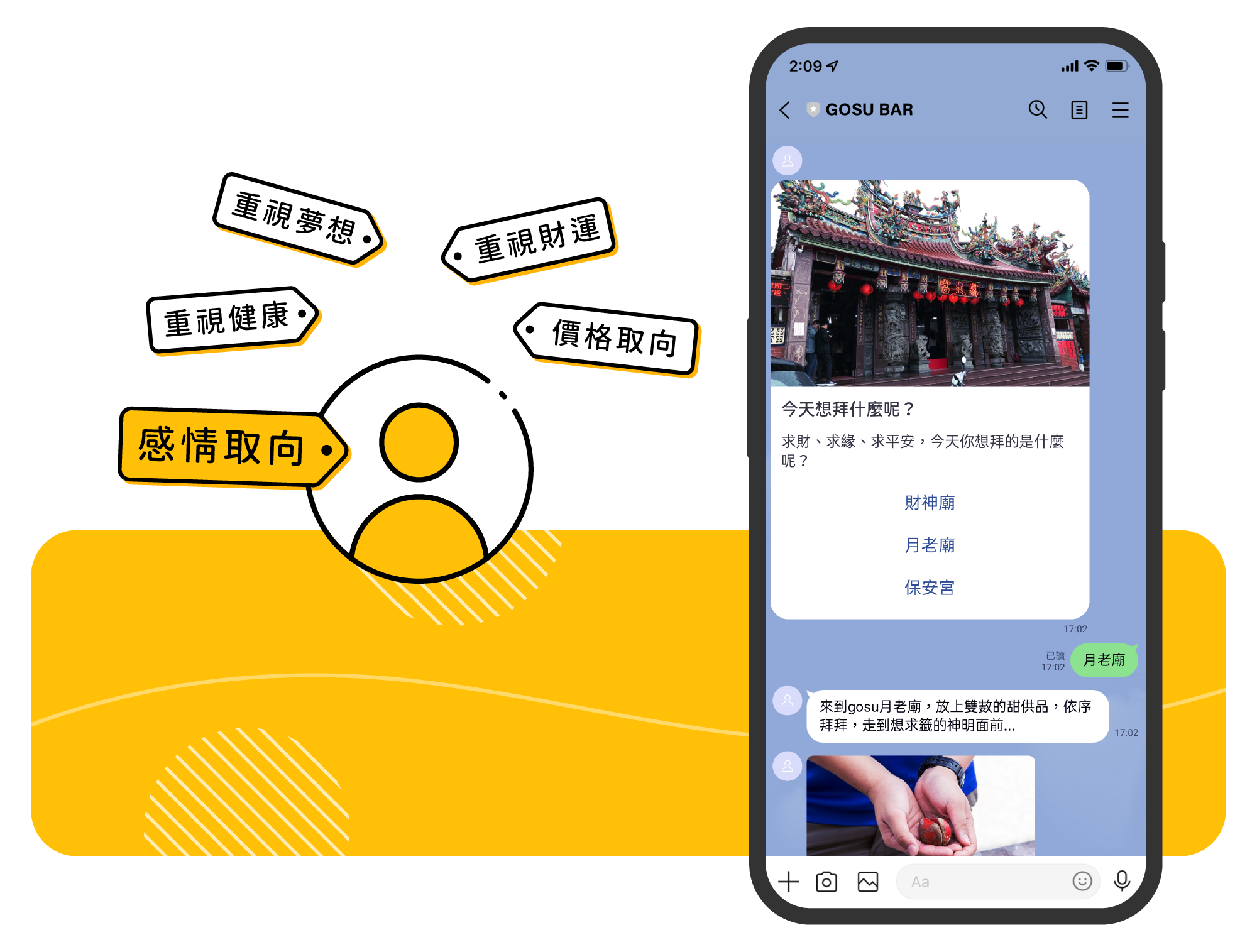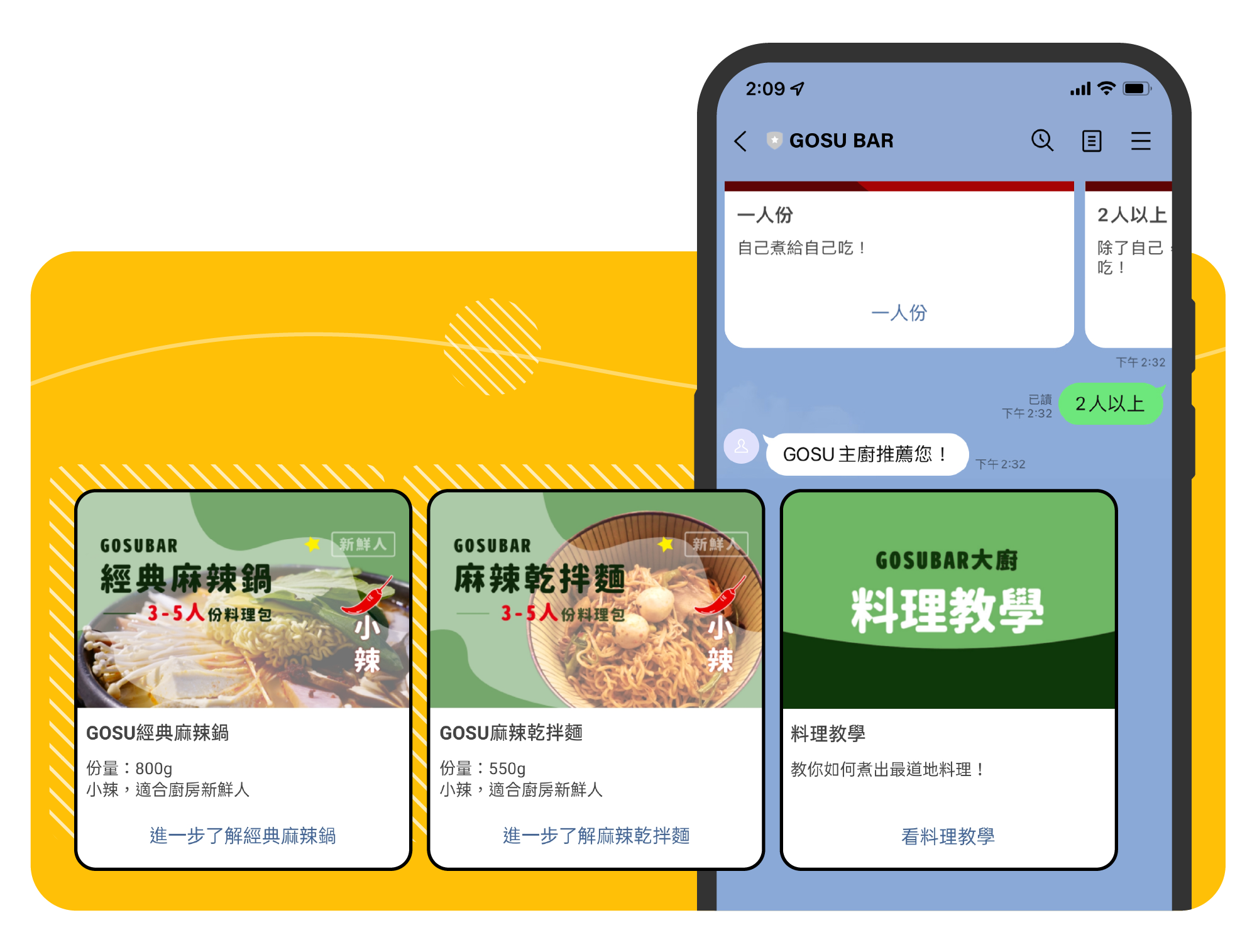 「想要全年無休、自動化推薦商品嗎?」透過人性化的問答,收集用戶的習慣與需求,即時推薦用戶適合的商品,引導用戶進行購買。