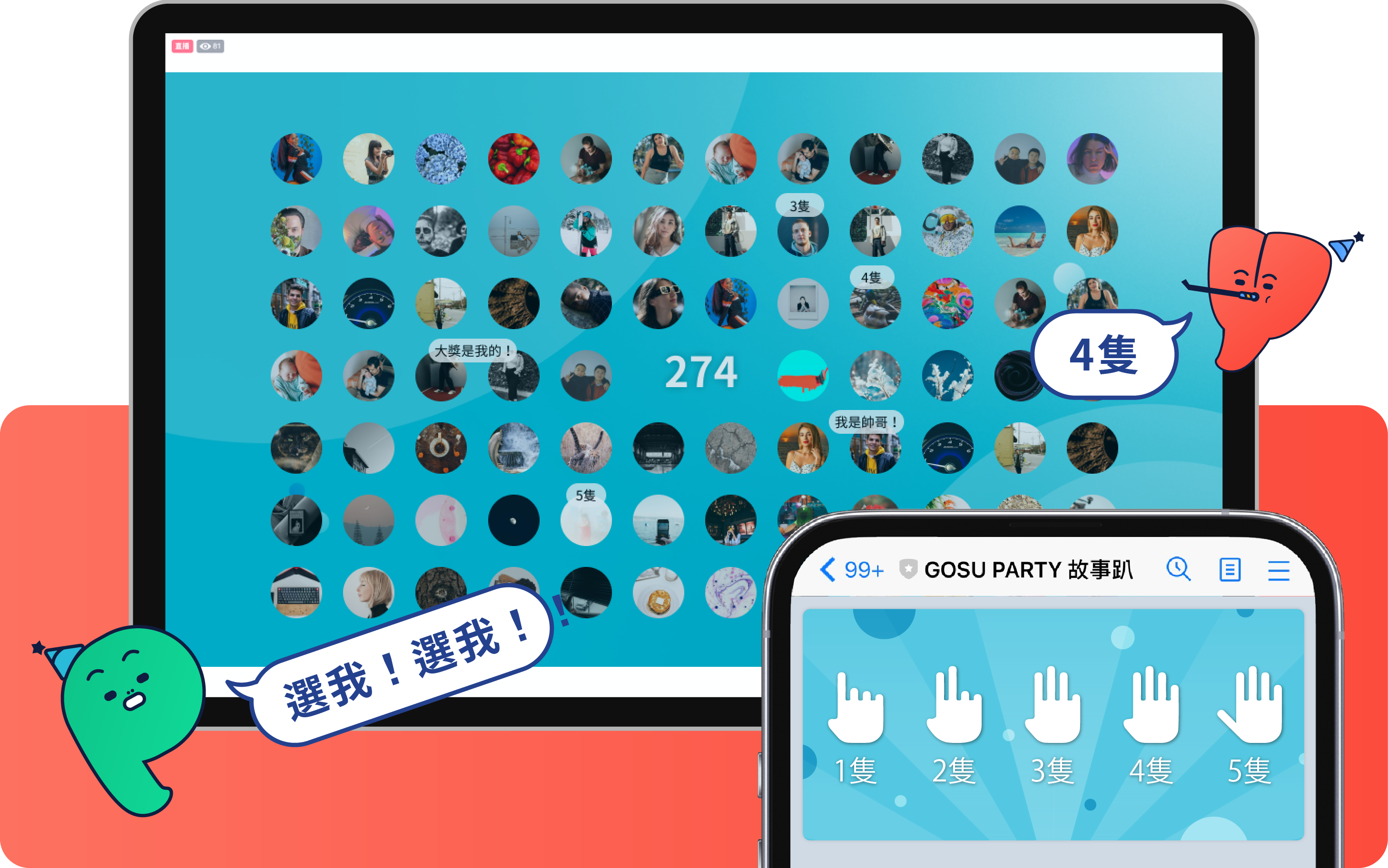 簡單的手指數隻遊戲,搭配生動有趣的抽獎畫面,大人小孩都能輕鬆參與。在小型場地中成為活動焦點,維持氣氛熱度。在大型活動場地中,把握住洶湧人潮的目光,讓觀眾為您停下腳步。