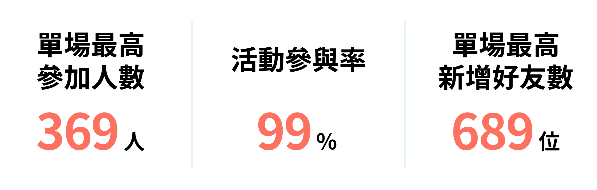 不論活動人數多寡,都能一次把握住潛在客戶,讓品牌成為整場活動的亮點,創造 99% 的超高參與率!