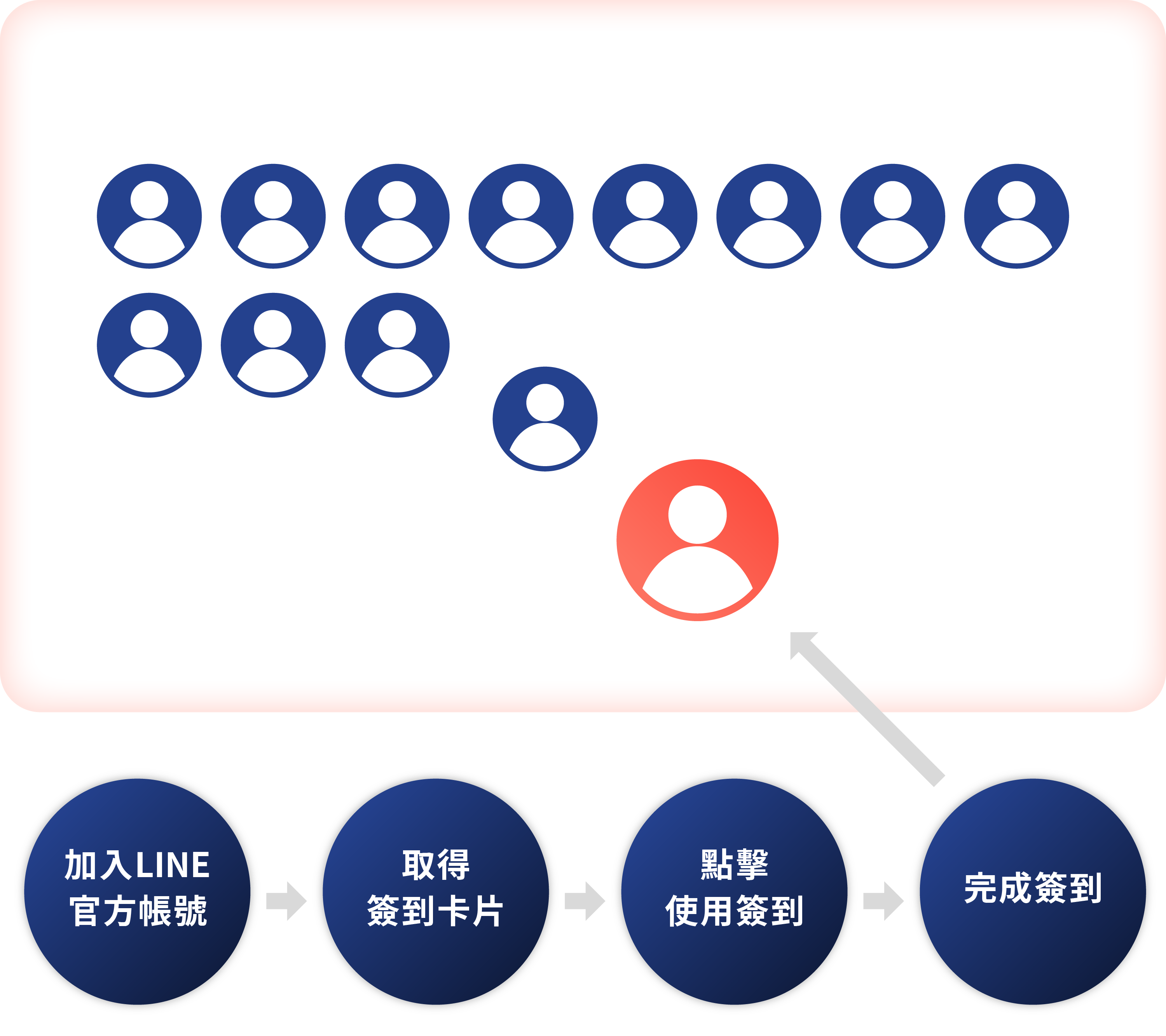 過去簽到只限於紙本填寫,客戶留下名字後便離開,無法建立溝通管道,也錯失一個互動的大好機會。